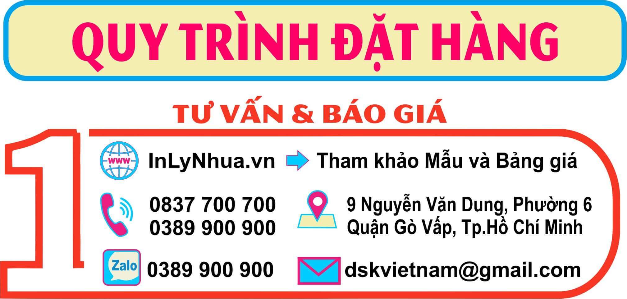 Cám ơn Qúy Khách đã và đang tìm hiểu đặt hàng tại Công Ty TNHH DSK Việt Nam, hoặc tại Website: inlynhua.vn . Để Qúy khách hiểu hơn về Quy Trình Đặt Hàng tại website: InLyNhua.vn, Chúng tôi liệt kê 4 Bước ngắn gọn để Qúy Khách hàng hiểu rõ khi có nhu cầu đặt hàng. BƯỚC […]